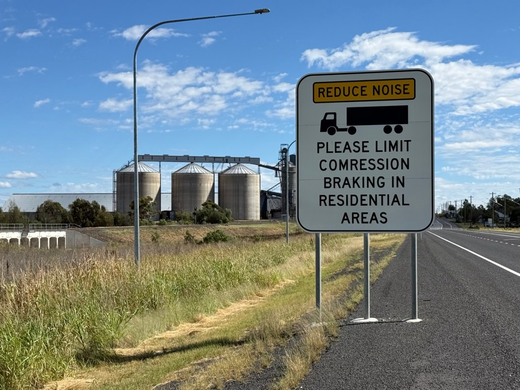 Never camp at the bottom of a long hill that’s a main highway is my advice! Most built up areas request truck drivers desist, hence the sign.