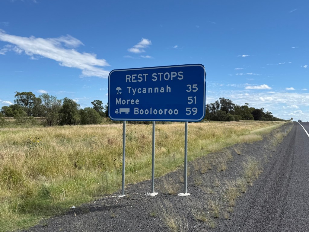 I started with a tailwind and had it for most of the ride but ground into Moree in a headwind? I hadn’t booked any accommodation but I was starting to come to the conclusion that camping was too uncomfortable with high temperatures until late in the night and maybe motels would be the way forward. I darted into a McDonalds to research options where my only thoughts were an ice cold drink and ice cream. It seems McDonalds is my social hub. Vicky asked me if I needed advice. She was another farmer popping into get some lunch whilst a tyre was being changed. She had concerns about my safety. I put her mind at rest.