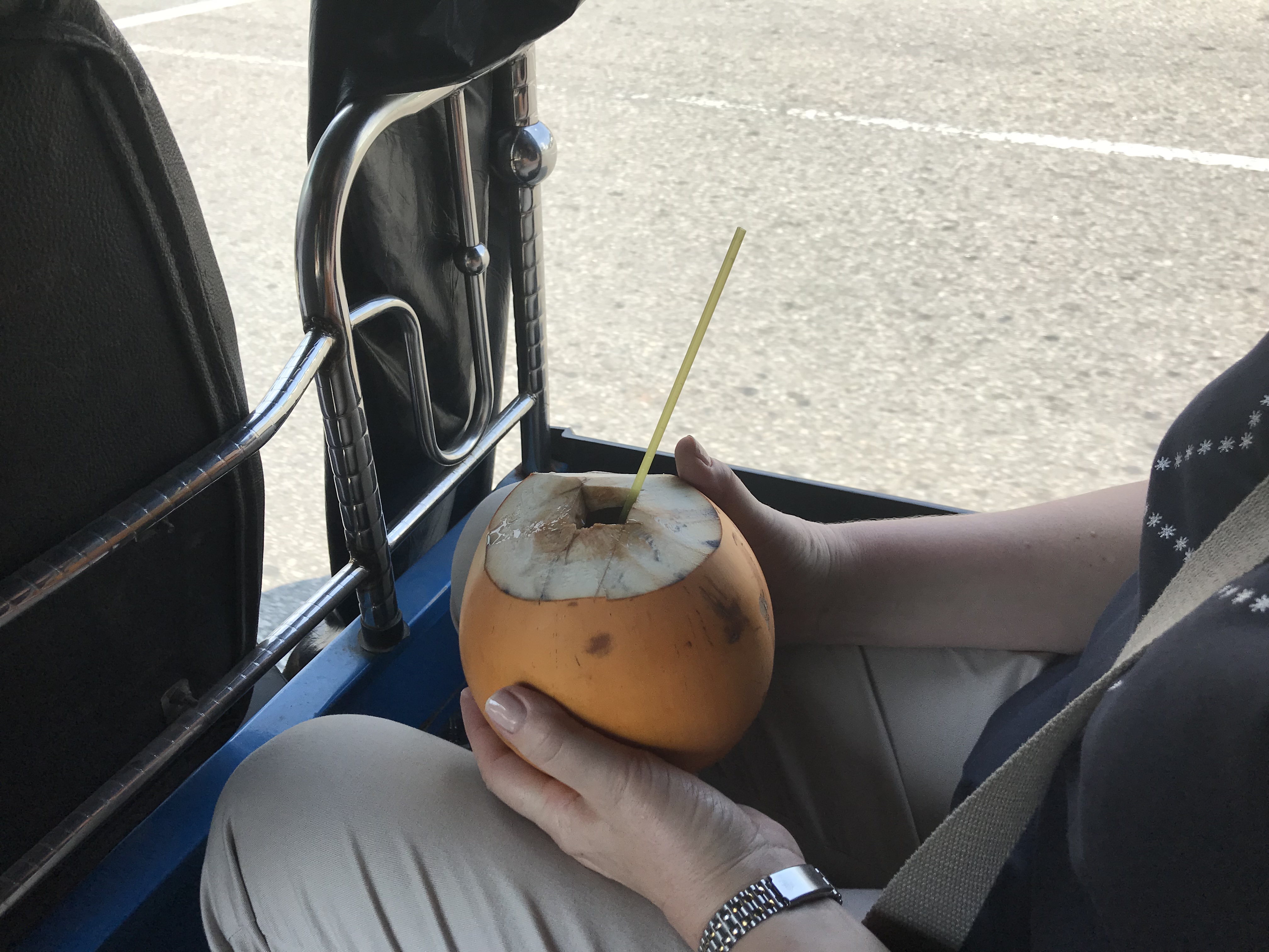 Back on the bus we next stopped at a small shed/lock up garage and saw the many uses of coconut and its tree. These included – food, alcohol, oil for lights, vinegar, roofing, rope, mats and cooking utensils from the shells. Quite amazing. This host family of man and wife, child and mother put on a slick show demonstrating how they used the flesh, leaves, shell and liquids to make all these things. We were enthralled.
