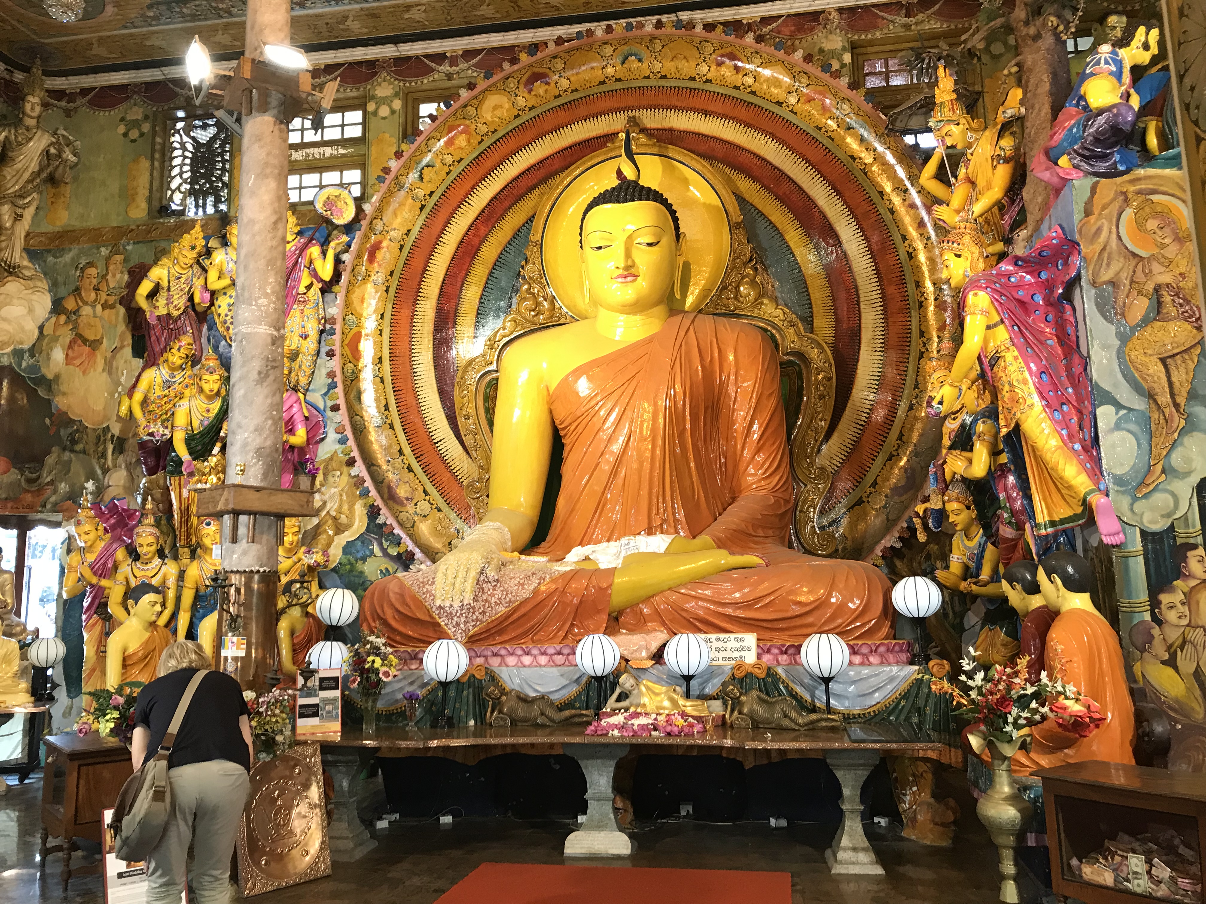 The tooth is under lock and key and we didn’t see it. It is always held by the highest in the land, whether that is the king or now the President. We Brits held it (appropriated) after our occupation yet ‘kindly’ gave it back in 1857. This return is shown in a picture in the Temple. More recently the Temple was bombed in the late 90s by the Tamil Tigers killing 16, including the bombers. This is not the first bombing. The damage has been repaired.